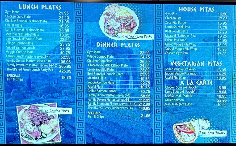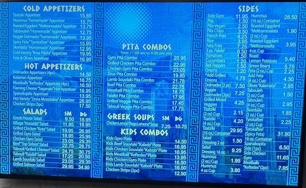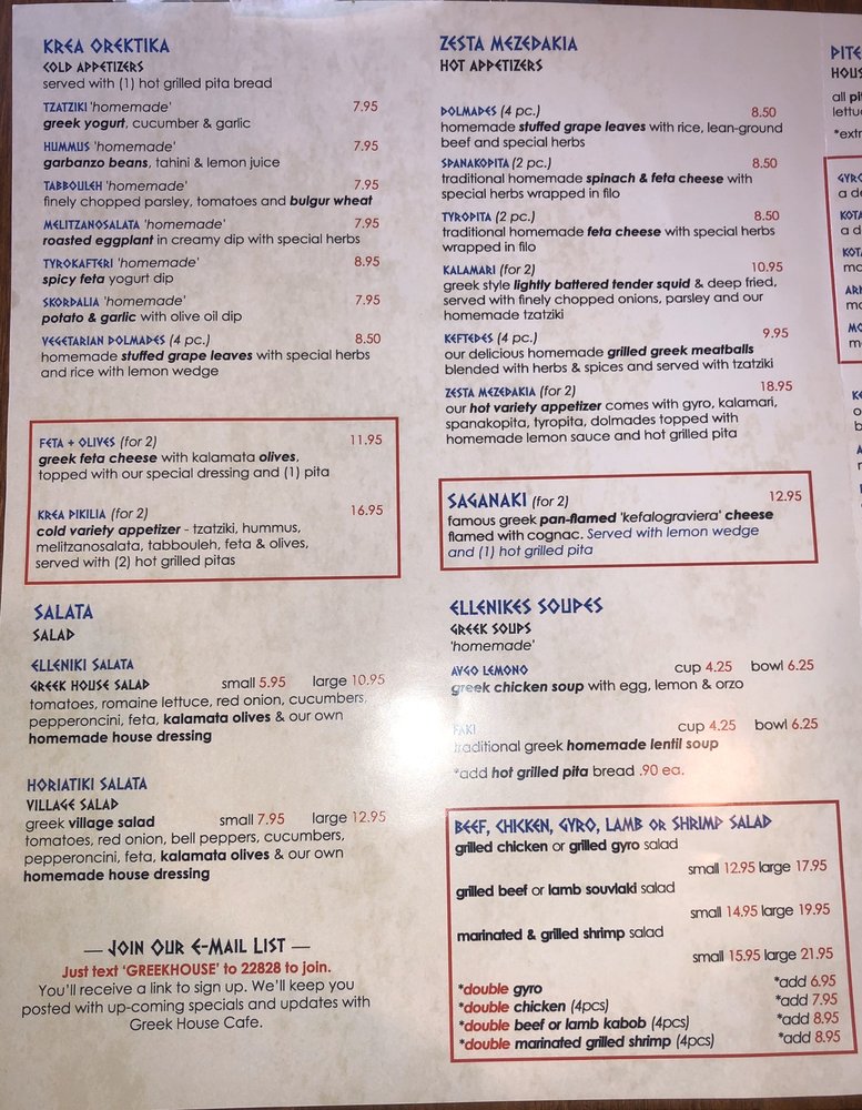 () chicken souvlaki () lamb souvlaki, () tzatziki () hummus appetizer, () side gyro, () side rice, () large Greek House salad, () side Lemon Roast Potatoes, () side Green Beans () hot grilled pitaNO SUBSTITUTES Please see sides for Additional SidesPLEASE NOTE: All FAMILY PACKS come as they are priced. Prices may vary if you modify them, due to the difference in pricing for chicken, lamb, or beef.